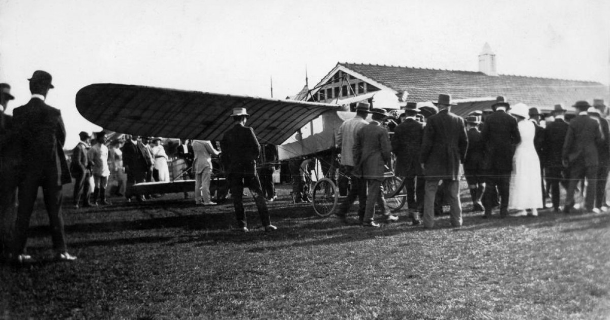 Lady MacGregor, the Governor’s wife, and lieutenant Governor Sir Arthur Morgan were two of the eminent citizens there to witness the first flight. At 4 o’clock in the afternoon, with clear skies and a light breeze the bird-like machine was guided out of the tent on the oval. After warming up, the monoplane was sent soaring 200 ft into the air. Stone flew the plane 3 times around the exhibition grounds amid great cheers from the crowd, and with each turn increasing altitude until he reached 400 feet.