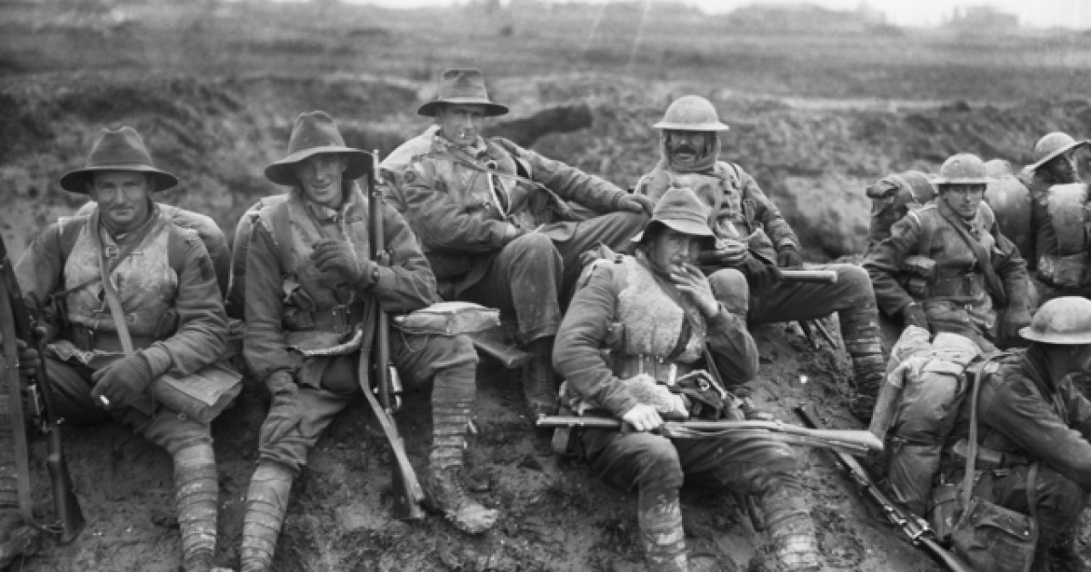 5th Division men wearing sheepskin jackets and woollen gloves, Australian War Memorial E00019