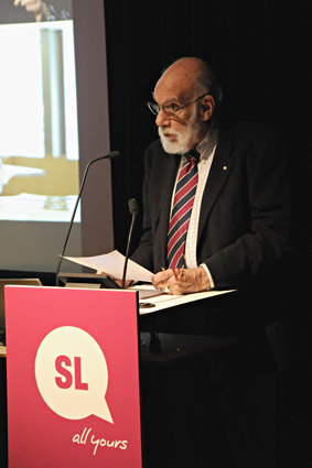 Emeritus Professor Geoffrey Bolton speaking at the Navigating Our Business History